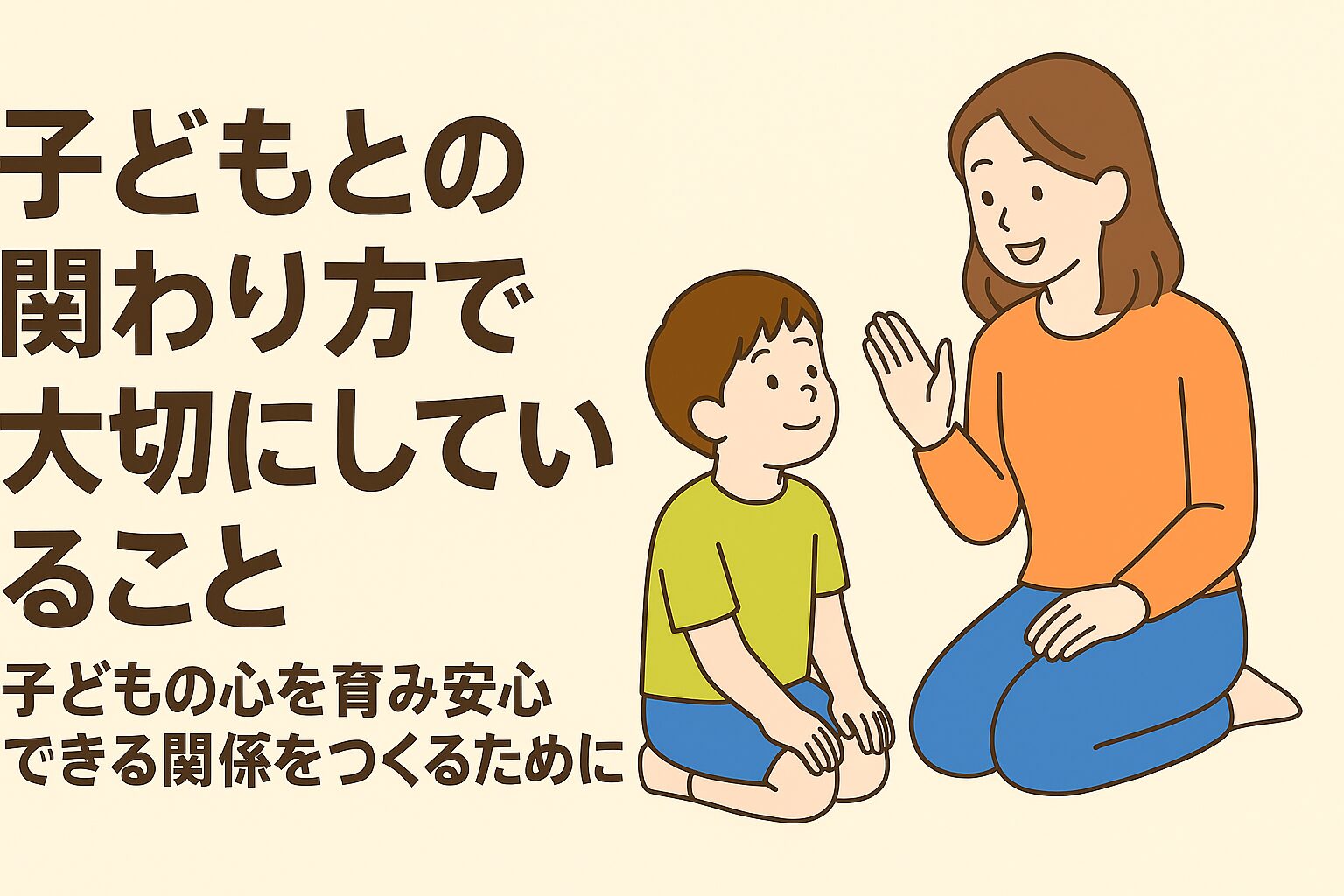 こどもとの関わり方は、その子の心の安定や自己肯定感に大きく影響します。ここでは、私が日々大切にしている「こどもとの関わり方」について、すぐに日常に取り入れられるポイントをまとめました。
